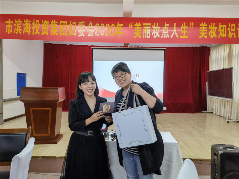講師從保養(yǎng)護膚到上妝步驟的詳細講解,細心的展示一些日常護膚產品和體驗效果,現場還邀請女員工上臺當模特,一邊化妝一邊講解技巧,讓在場的每位員工零距離感受到了護膚與化妝的魅力。講座還準備了特別小禮品,作為對參加現場競猜環(huán)節(jié)的獎勵,現場抽取了三名幸運兒獲得精美禮品,氣氛異?;钴S。