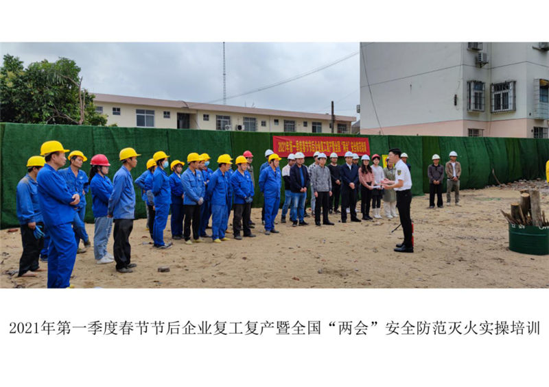 為有效預(yù)防各類火災(zāi)事故的發(fā)生,切實做好2021年春節(jié)節(jié)后企業(yè)復(fù)工復(fù)產(chǎn)暨全國“兩會”安全防范工作,3月9日我集團公司開展了復(fù)工復(fù)產(chǎn)暨全國“兩會”安全防范的培訓工作,通過線上直播培訓復(fù)工復(fù)產(chǎn)安全防范、春季火災(zāi)預(yù)防、初期火災(zāi)撲救及逃生自救辦法,并結(jié)合發(fā)生的火災(zāi)案例講解火災(zāi)發(fā)生的原因及火災(zāi)過程中的思想和行為,提高安全防范意識。在線下我集團公司聯(lián)合相關(guān)施工單位在項目工地上開展滅火實操演練,學習干粉滅火器的使用方法和注意事項。