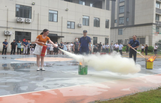 (職工在進行滅火器使用演練)