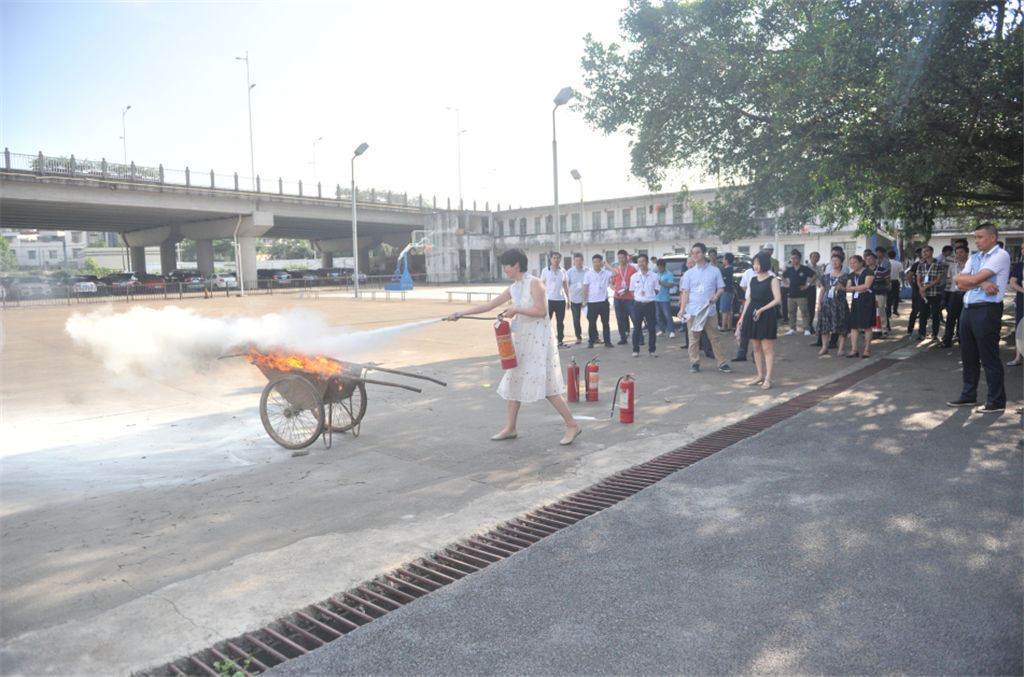 授課后,在張教官帶領下開展了人員密集公共場所疏散及滅火器操作的實物演練。