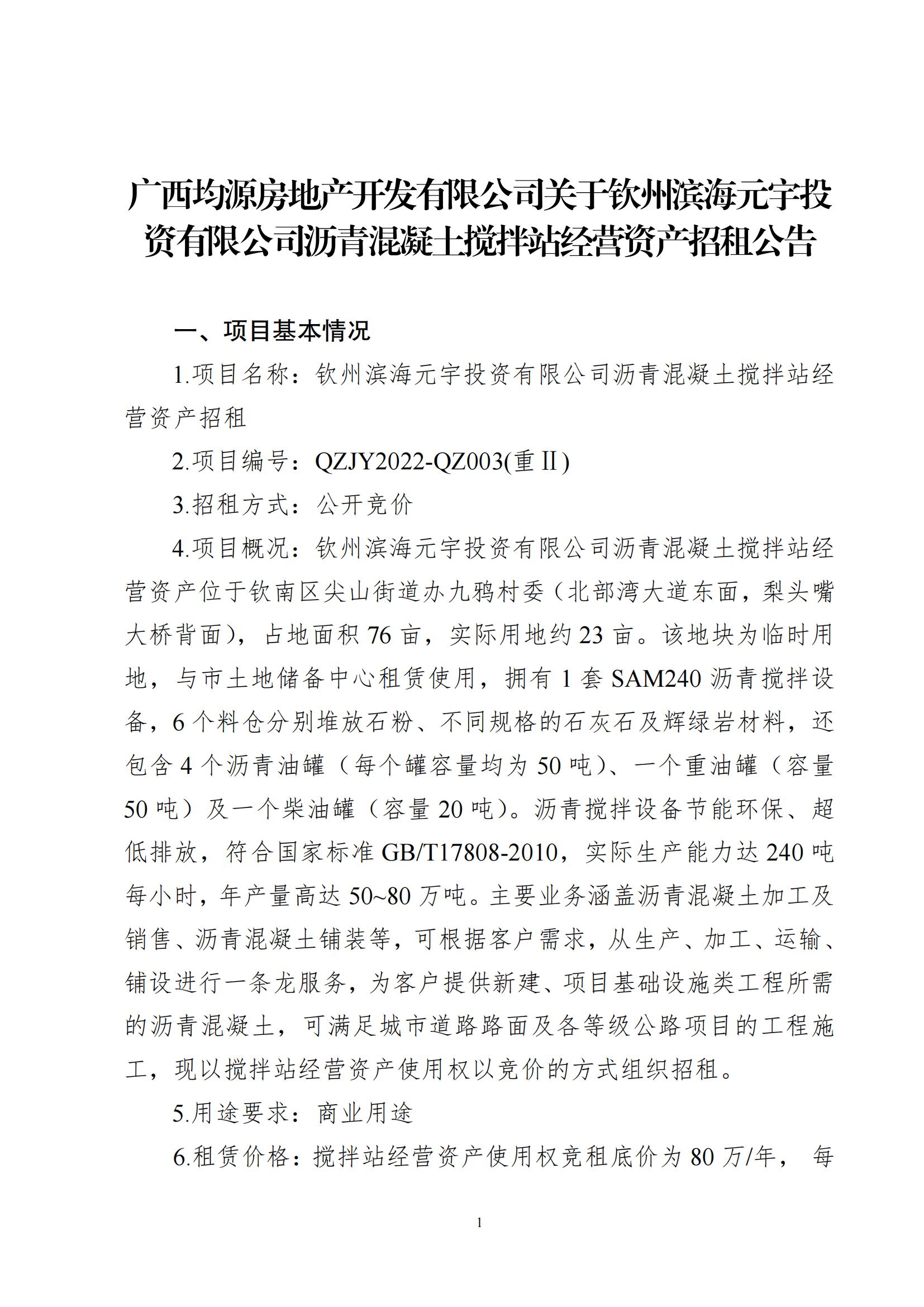 關(guān)于欽州濱海元宇投資有限公司瀝青混凝土攪拌站經(jīng)營資產(chǎn)招租公告