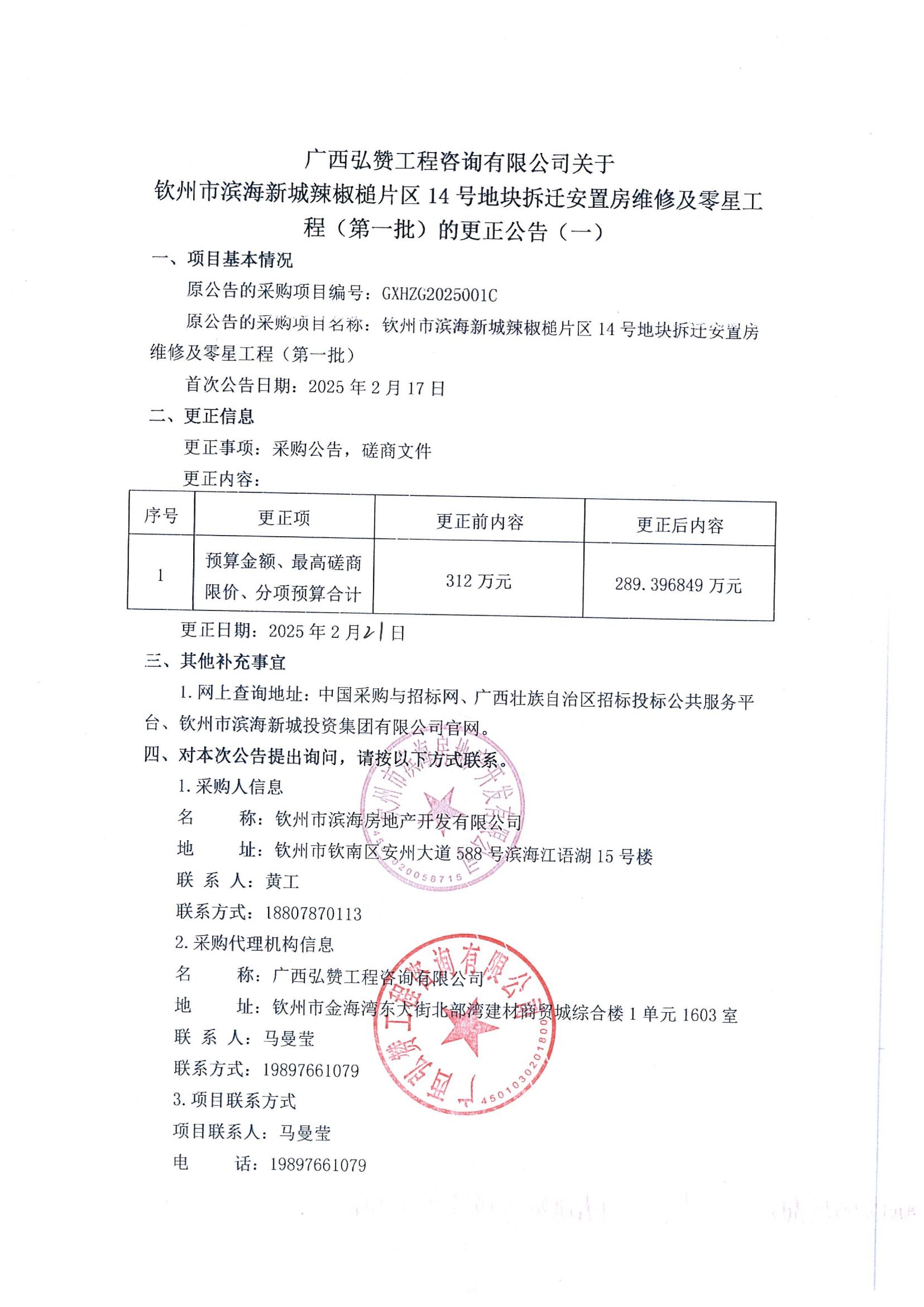 欽州市濱海新城辣椒槌片區(qū)14號(hào)地塊拆遷安置房維修及零星工程(第一批)的更正公告